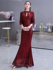 Mermaid Designed Neckline Sequined Floor Length Sequins Formal Dinner Evening Dresses Color : Burgundy Style : Mermaid Pattern : Solid Color Embellishment : Sequins Read More April 16, 2020 No Comments