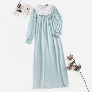 Women Appliques Front Ruffle Trim Nightgown Color : Blue Material : Polyester Embellishment : Lace Details : Ruffle, Appliques Read More June 23, 2019 No Comments