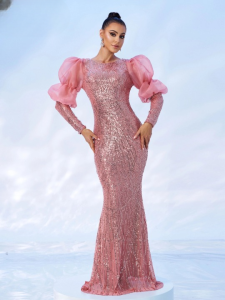 Round Neck Lantern Sleeves Sequin Mermaid Floor Length Dress Silhouette: Trumpet / Mermaid Elasticity: Slight Stretch Fit Type: Slim Read More March 4, 2025 No Comments