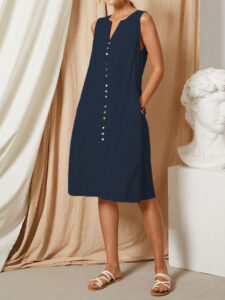 Solid Multi-color Button V-neck Sleeveless Casual Dress Color : White, Navy Pattern : Solid Material : Cotton Occasion : Casual Length : Midi Read More March 23, 2021 No Comments