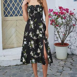 Lily Floral Print Slash Neck Ruffles Elastic Waist Beach Casual Dress