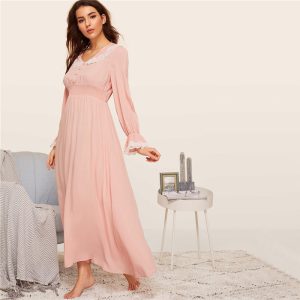 Lady Shirred Panel Lace Trim Bell Sleeve Nightgown Color : Pink Material : Rayon Dresses Length : Ankle-Length Embellishment : Lace, Pleated Read More June 22, 2019 No Comments