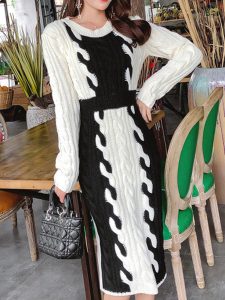 Charming Two Tone Split Front Jewel Neck Long Sleeves Knitted Dress Color : Black Neckline : Jewel Fabric : Acrylic Pattern : Two-Tone Style : Retro Read More December 11, 2019 No Comments