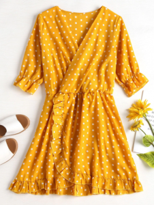 Ruffle Polka Dot Mini Faux Wrap Dress Color : Yellow Material : Polyester Pattern : Polka Dot Season : Summer Read More July 11, 2018 No Comments