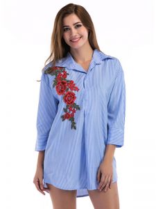 Blue Shirt Dress Turndown Collar Striped Embroidered 3/4 Length Sleeve Short Dresses For Women Sleeve Length : 3/4-Length Sleeve Neckline : Turndown Collar Shown Color : Blue Season: Summer Read More June 26, 2018 No Comments