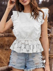 Lace Blouse Sleeveless Ruffle Peplum Tops Fabric : Lace Color : White Style : Casual Pattern : Solid Color Read More April 29, 2020 No Comments