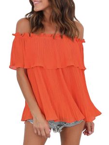 Bardot Top Off The Shoulder Ruffles Tops Color : Black,White,Orange Fabric : Polyester Neckline : Off-the-Shoulder Style : Casual Read More March 24, 2020 No Comments