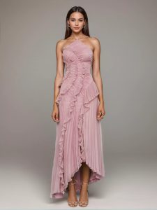 Ruffled Chiffon And Halter Neck Maxi Gown With Irregular Hem Waistline: Raised Back Details: Backless Slit Type: front Read More August 2, 2025 No Comments