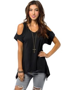 Women V Neck Cold Shoulder Swing Top Color : Green , Blue , Black Neckline : V-neck Fabric : Polyester Season : Summer Read More June 17, 2019 No Comments