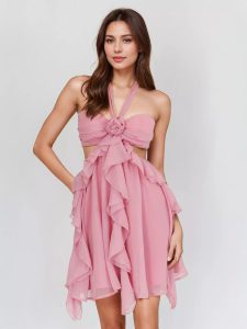 Elegant Floral Accents And Halter Neckline Chiffon Ruffle Mini Dress Design: Backless Waistline: Raised Read More July 22, 2025 No Comments