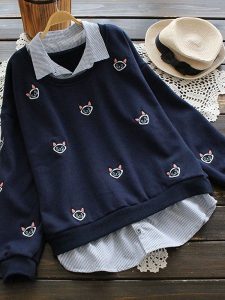 Cat Embroidery Fake Two Pieces Blouses Gender : Women Color : Navy,Khaki Season : Winter,Spring,Fall Material : Cotton Sleeve Length : Long Sleeve Read More February 20, 2019 No Comments