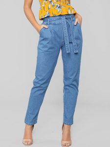 High Waisted Tie Belt Pockets Denim Pants For Women Color : Blue Pattern : Solid Color Embellishment : Pockets Read More August 11, 2019 No Comments