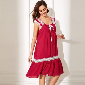 Women Scoop Neck Floral Lace Insert Knot Sexy Nightwear Color : Red Season : Summer Material : Rayon Decoration : Knot, Ruffle, Contrast Lace, Ruffle Hem Read More June 14, 2019 No Comments
