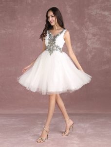 Tulle Lace Applique Beading Homecoming Knee Length Cocktail Prom Dress Color : Ivory Occasion : Homecoming, Prom Fabric : Tulle, Elastic Woven Satin Embellishment : Embroidered, Beaded Read More May 7, 2019 No Comments