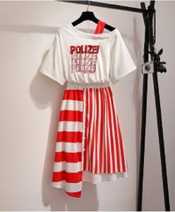 women 2 piece set sequins letter tops irregular striped skirt suit tshirt skirt set Material : Cotton Color : White Season : Summer Decoration : None Read More July 9, 2019 No Comments