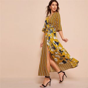 Floral Striped Print Surplice Neck Dress Three Quarter Length Sleeve Material : Polyester Color : Multicolor Season : Spring,Autumn Decoration : Sashes Read More August 9, 2019 No Comments