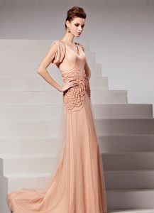 Beading V-Neck Short Sleeves Sheath Evening Dress
