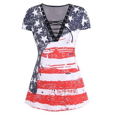 Be the first to review “American Flag Lace Up Plus Size T-shirt”