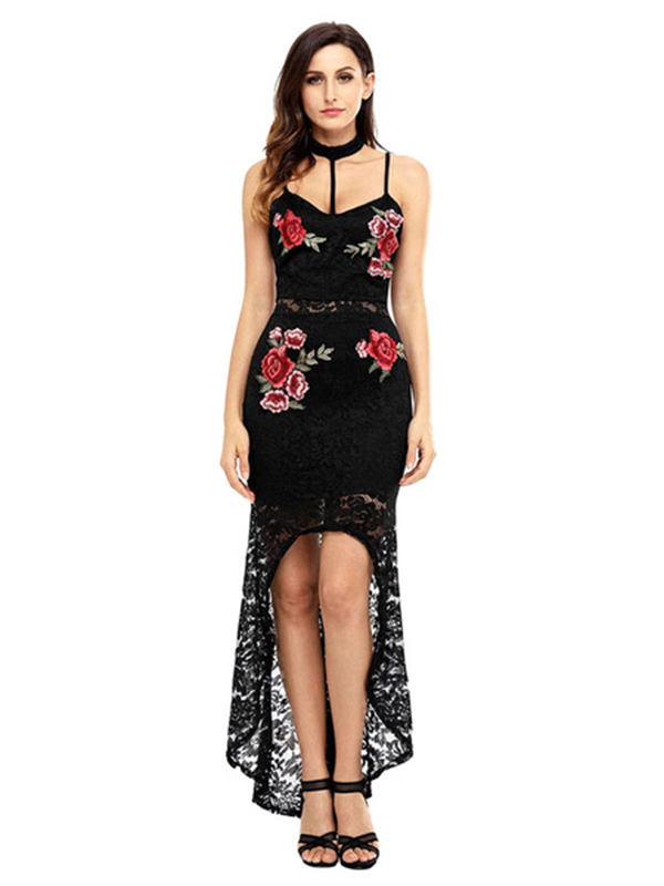Be the first to review “Black Lace Dress Sleeveless Peony Embroidered Split Long Dresses For Women”