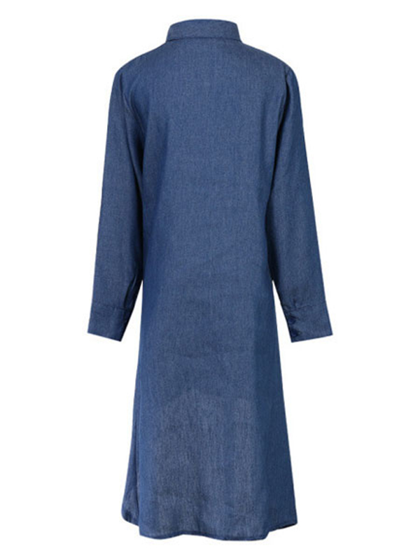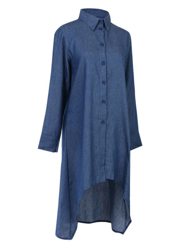 Be the first to review “Blue Shirt Dress Women’s Spread Collar Long Sleeve High Low Shift Dress”