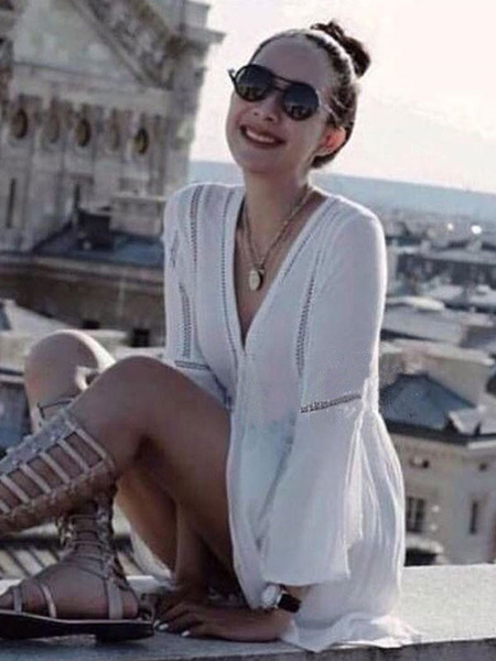 Boho Shift Sleeved V Neck Short Tunic Dress