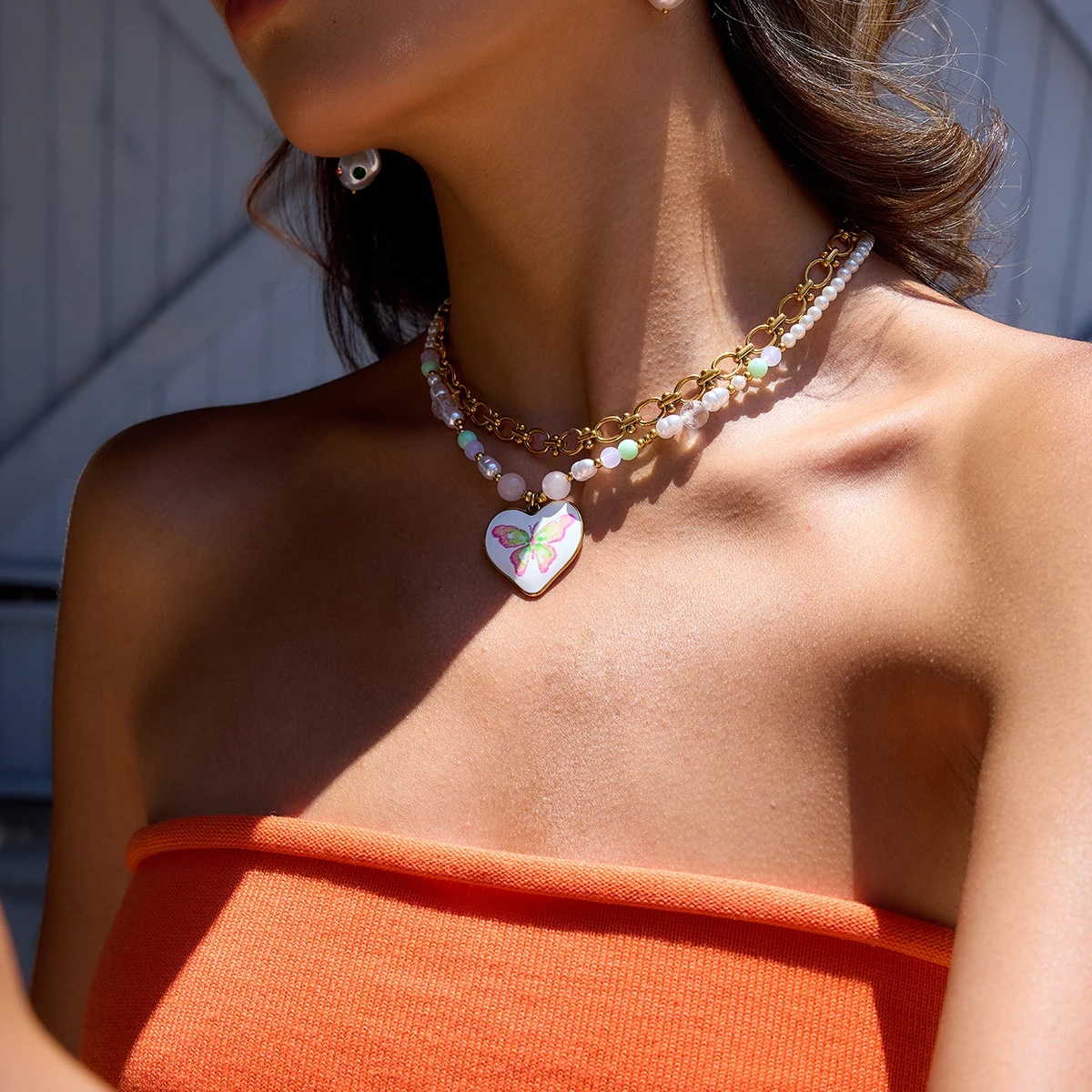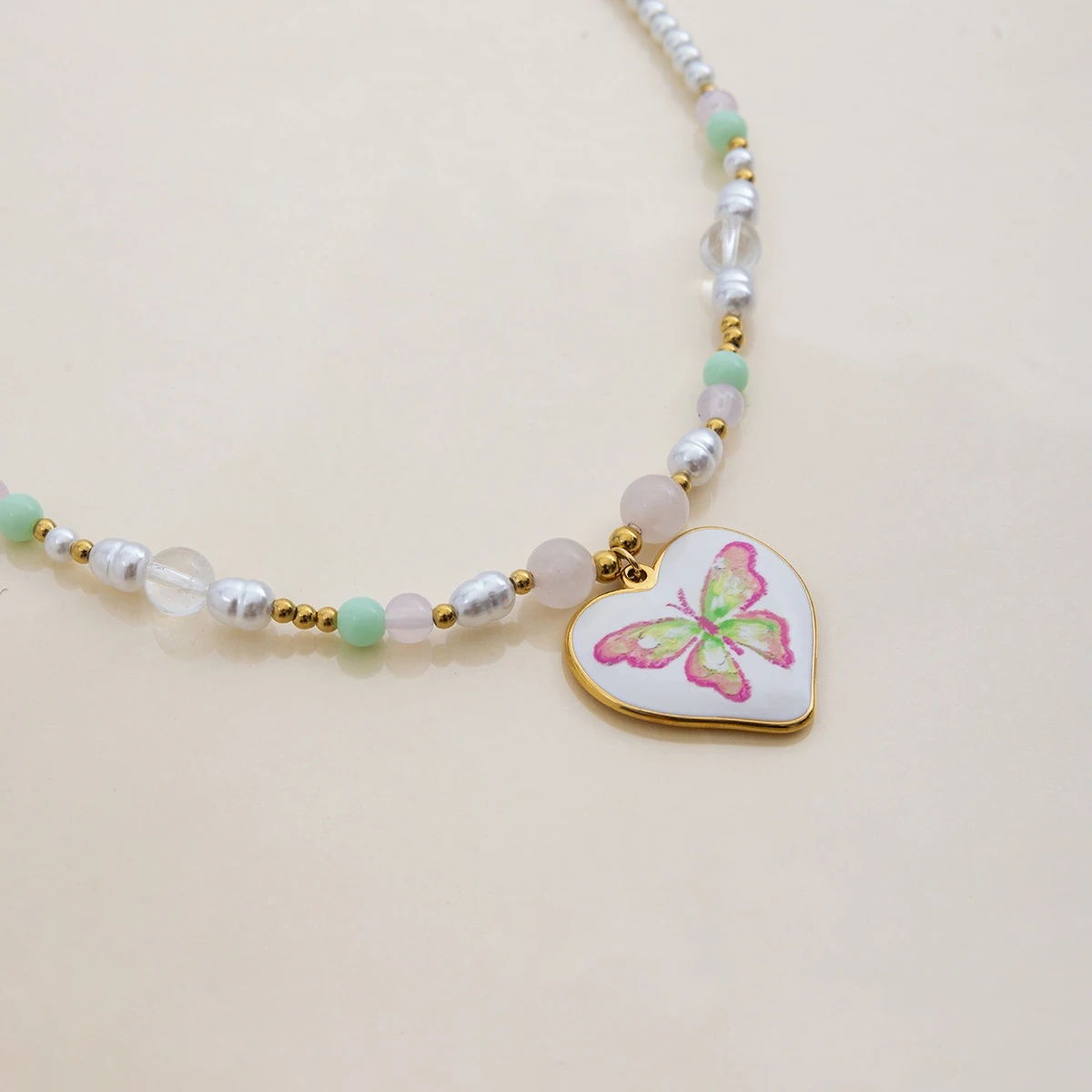 Be the first to review “Butterfly Print Plated Stainless Steel Drop Pearl Stackable Pendant Necklace”