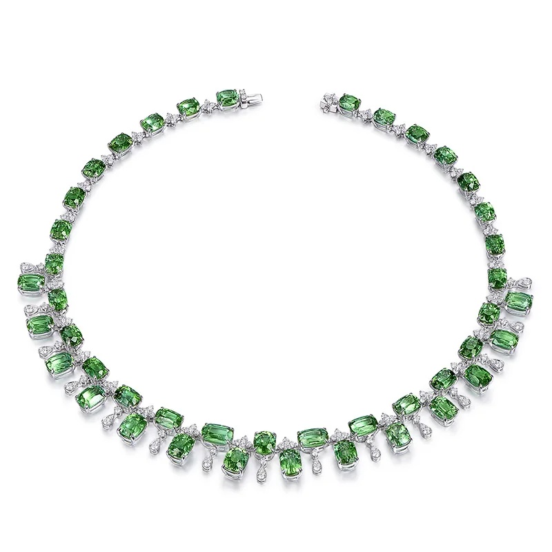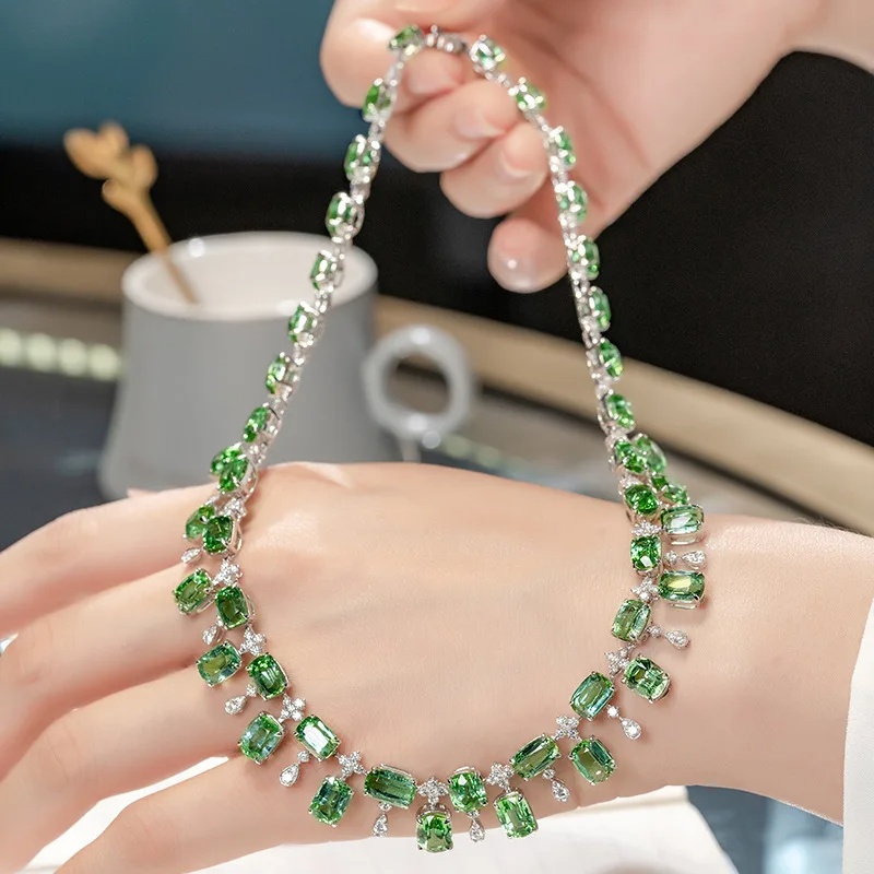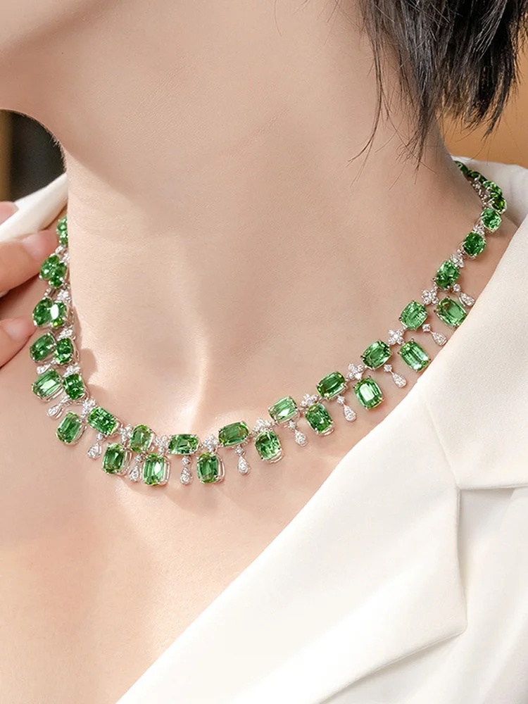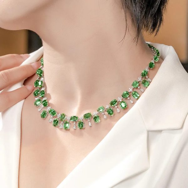 Designer Simulation Green Tourmaline Silver Color Chain Choker Necklace