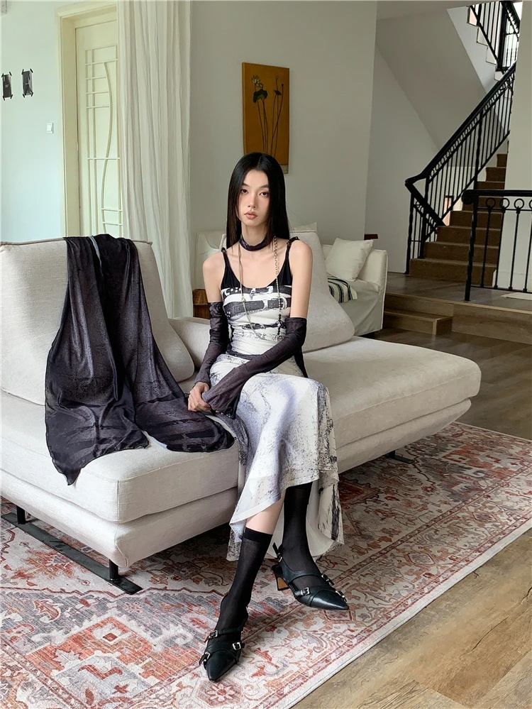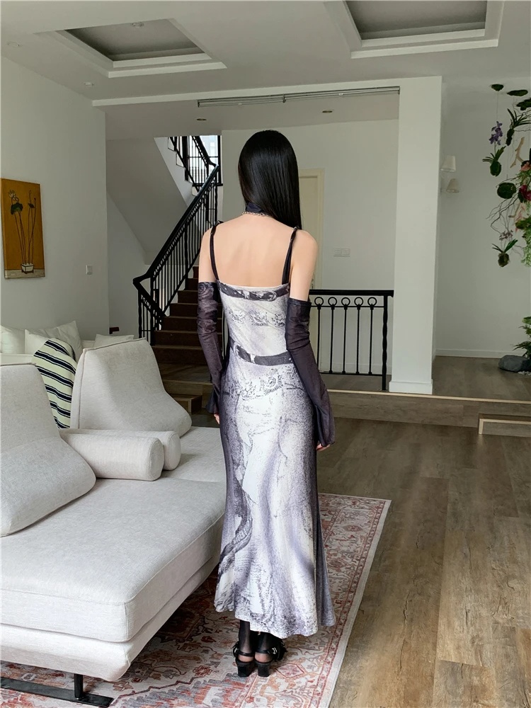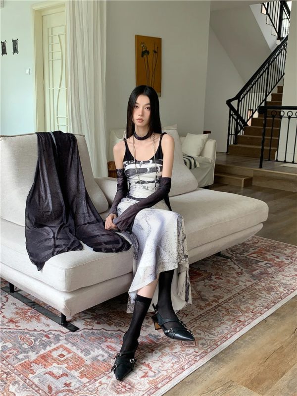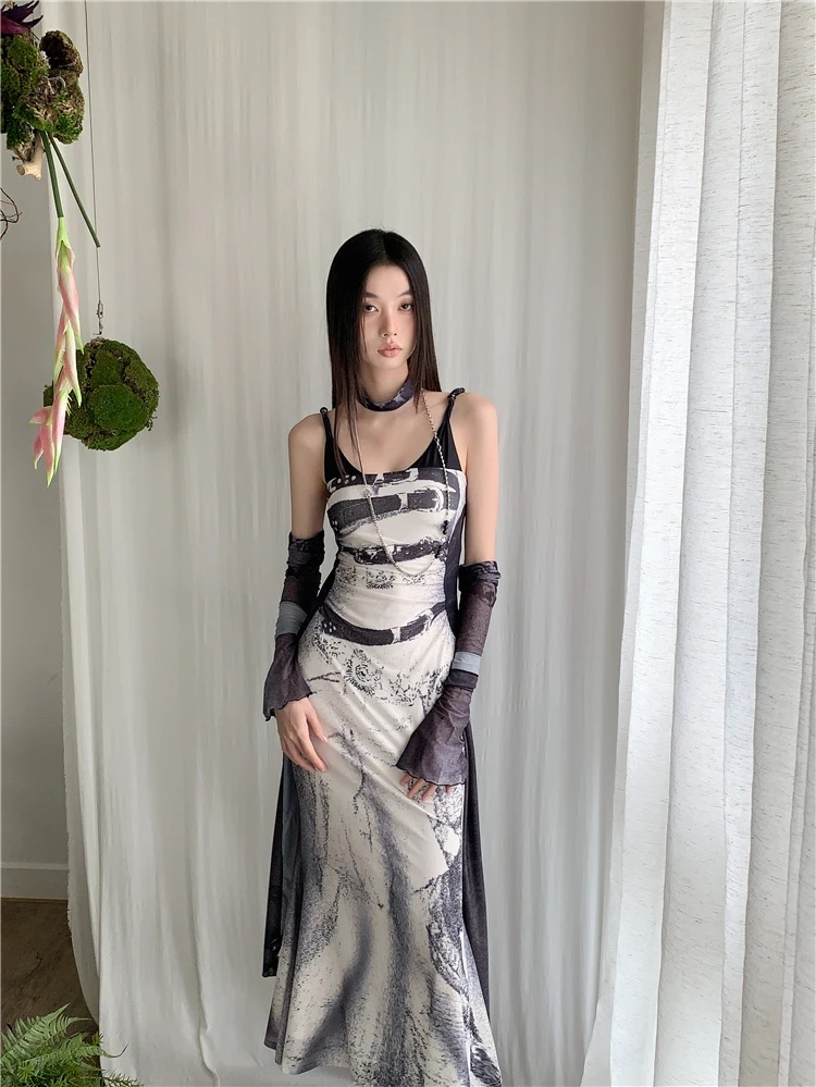 Be the first to review “Elegant A Line Patchwork Mesh Long Slip Dress”