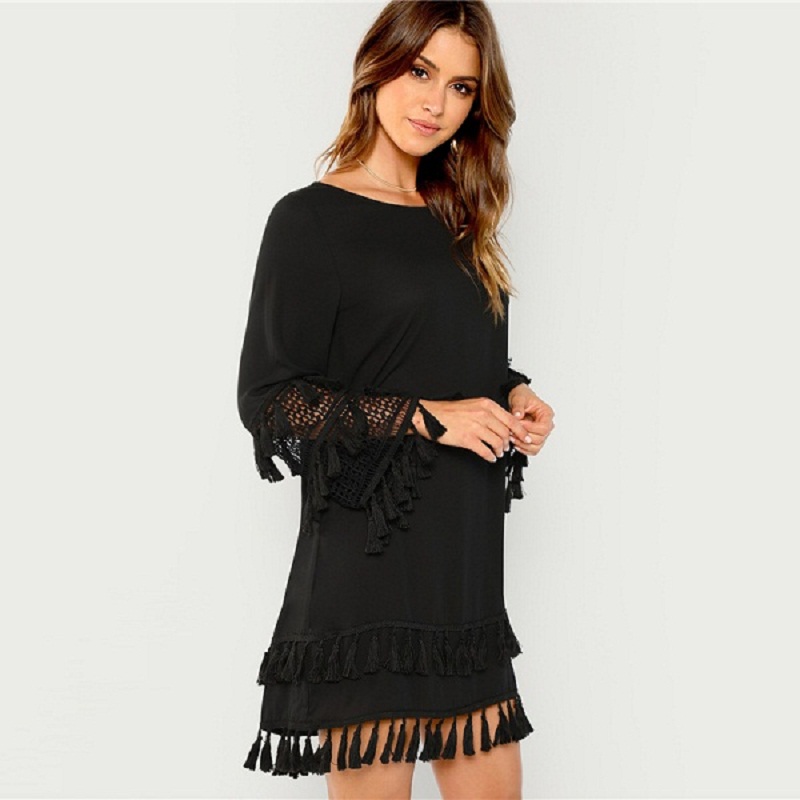 Be the first to review “Elegant Fringe Cut Out Straight Short Dresses”