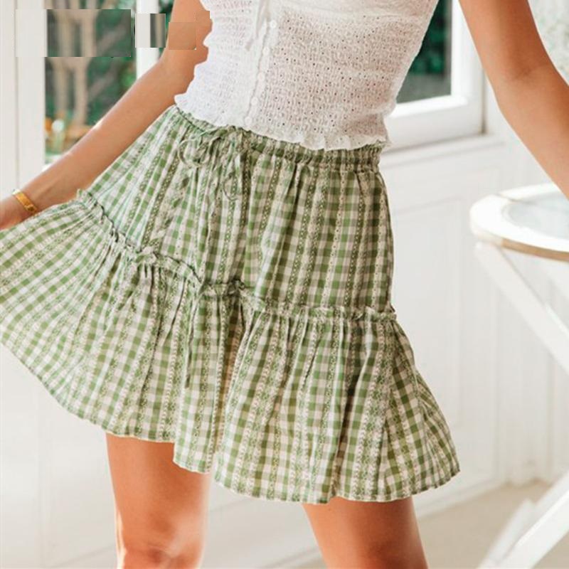 Be the first to review “Elegant Lace Up Plaid Print Skirts”