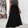 Ethnic Embroidery High Waist Maxi Dress