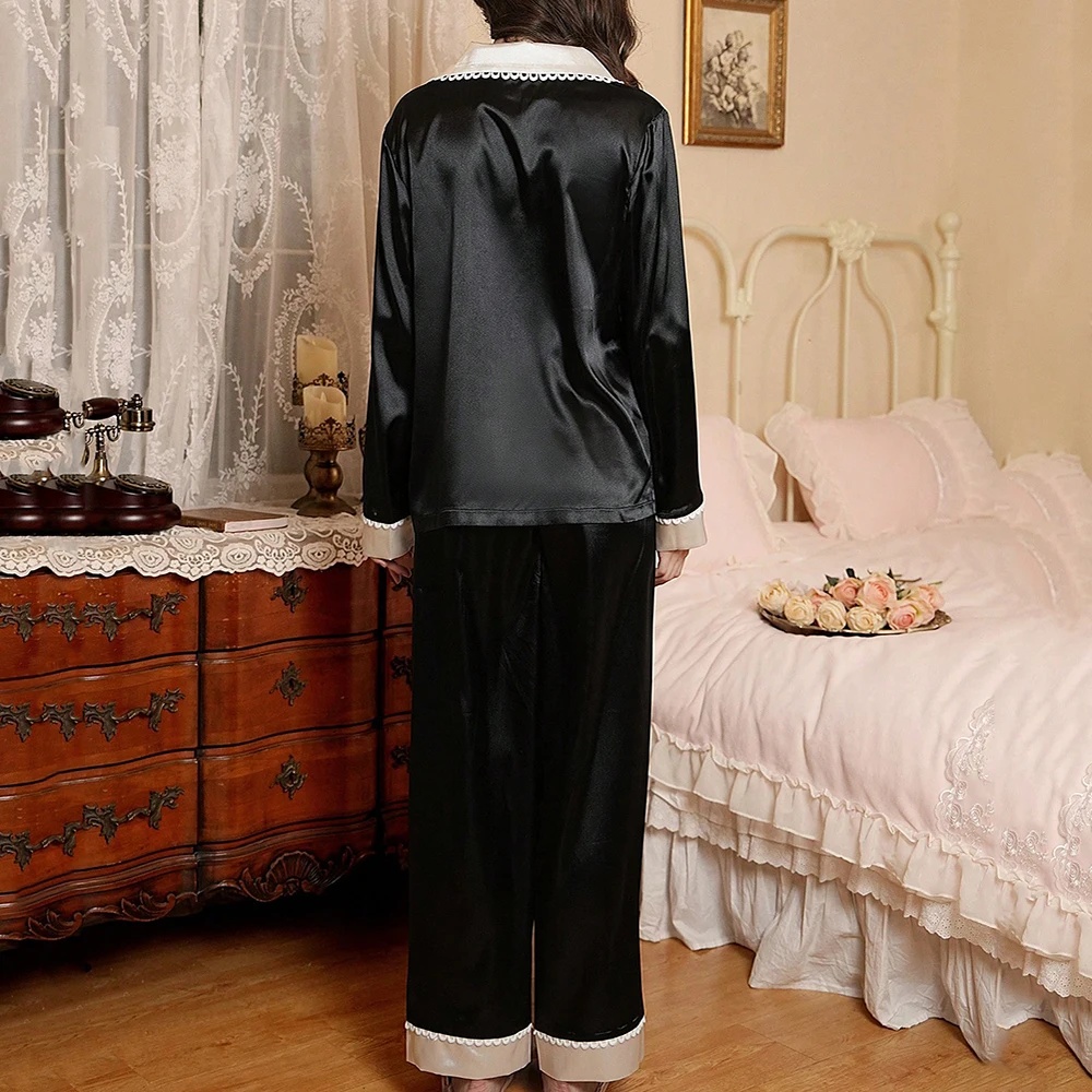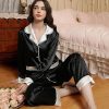 Female Solid Silk Fashion Button Down Satin Pajamas Sets