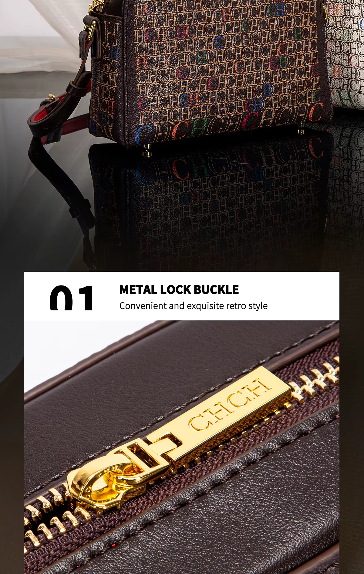 Floral Letters Printed Lock Design High Quality PU Material Designer Shoulder Bag