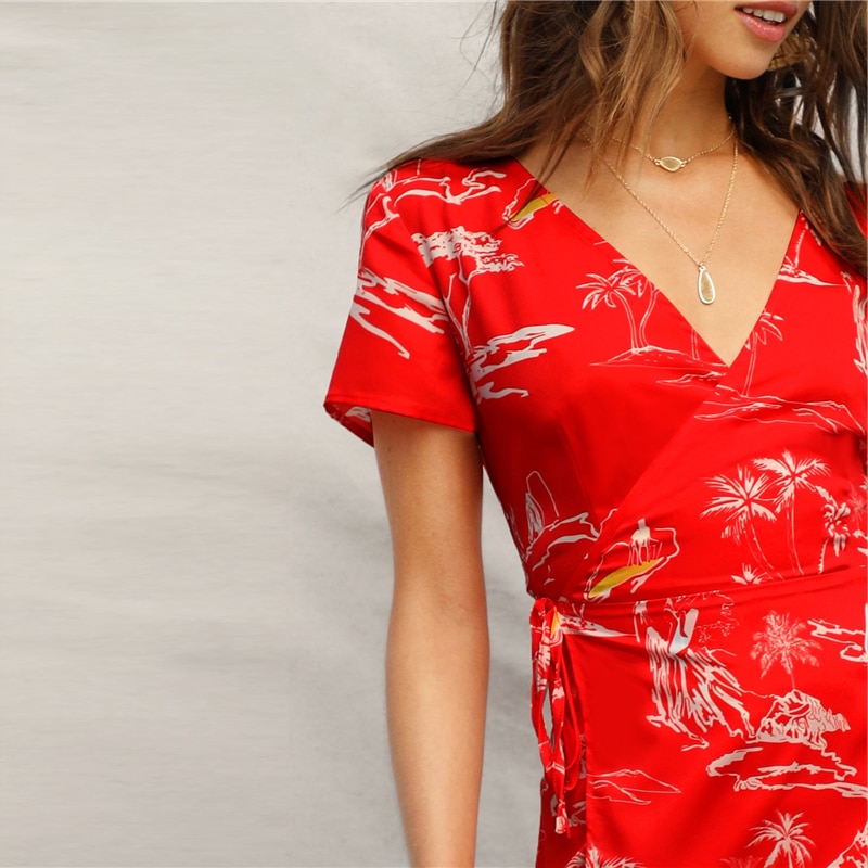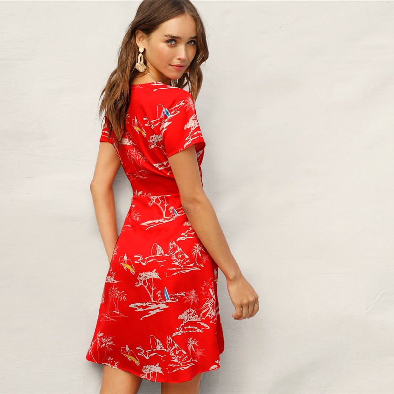 Knot Tropical Print Mini Boho A Line Fit and Flare Dress