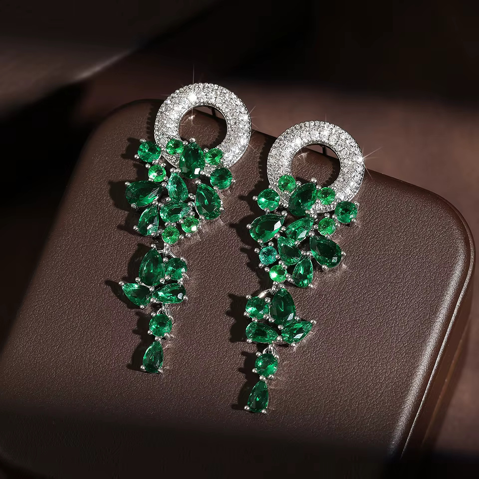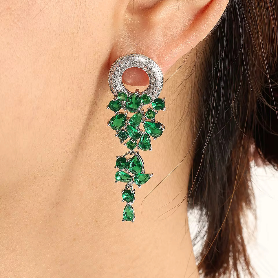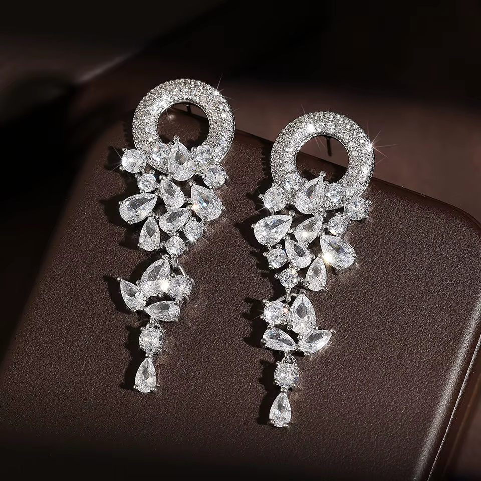 Luxury Crystal Sparkling Zircon Vintage Flower Dangle Earrings