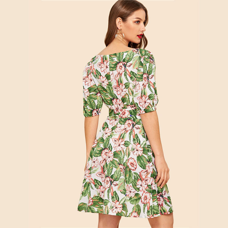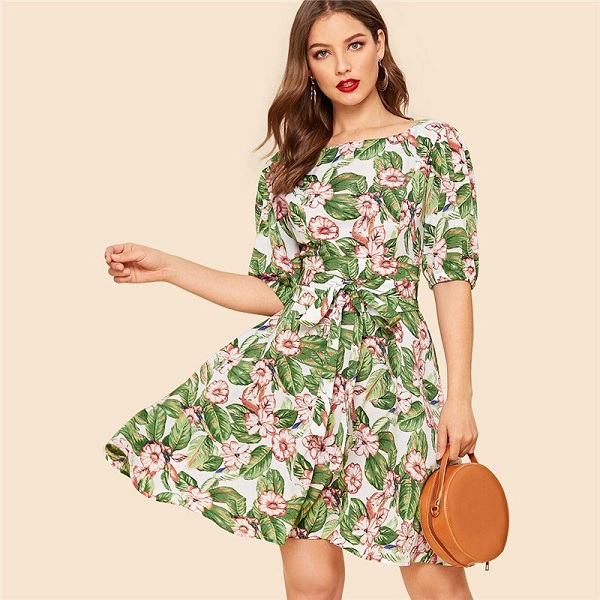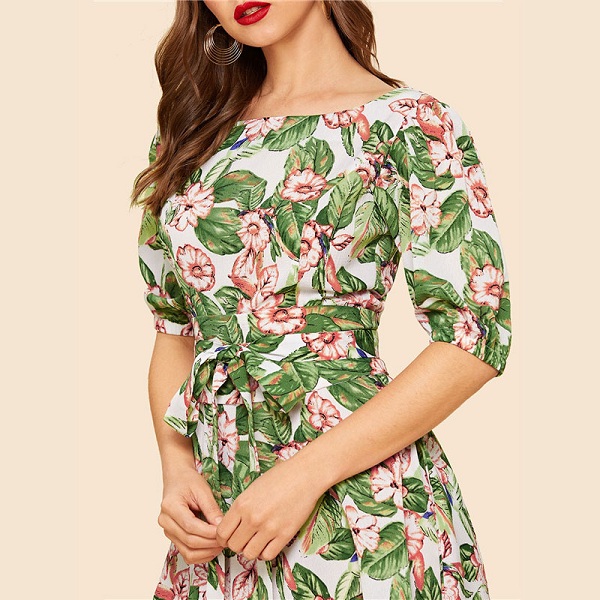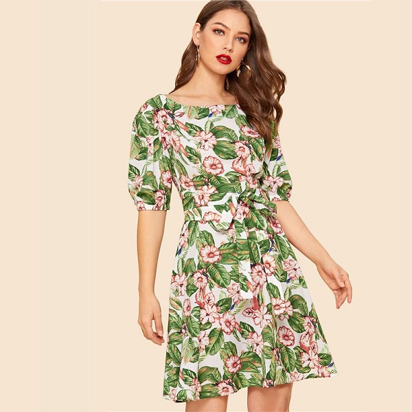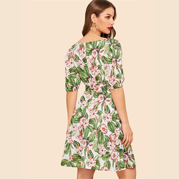 Be the first to review “Multicolor Floral Print Belted Mini Puff Sleeve Casual A Line Dress”