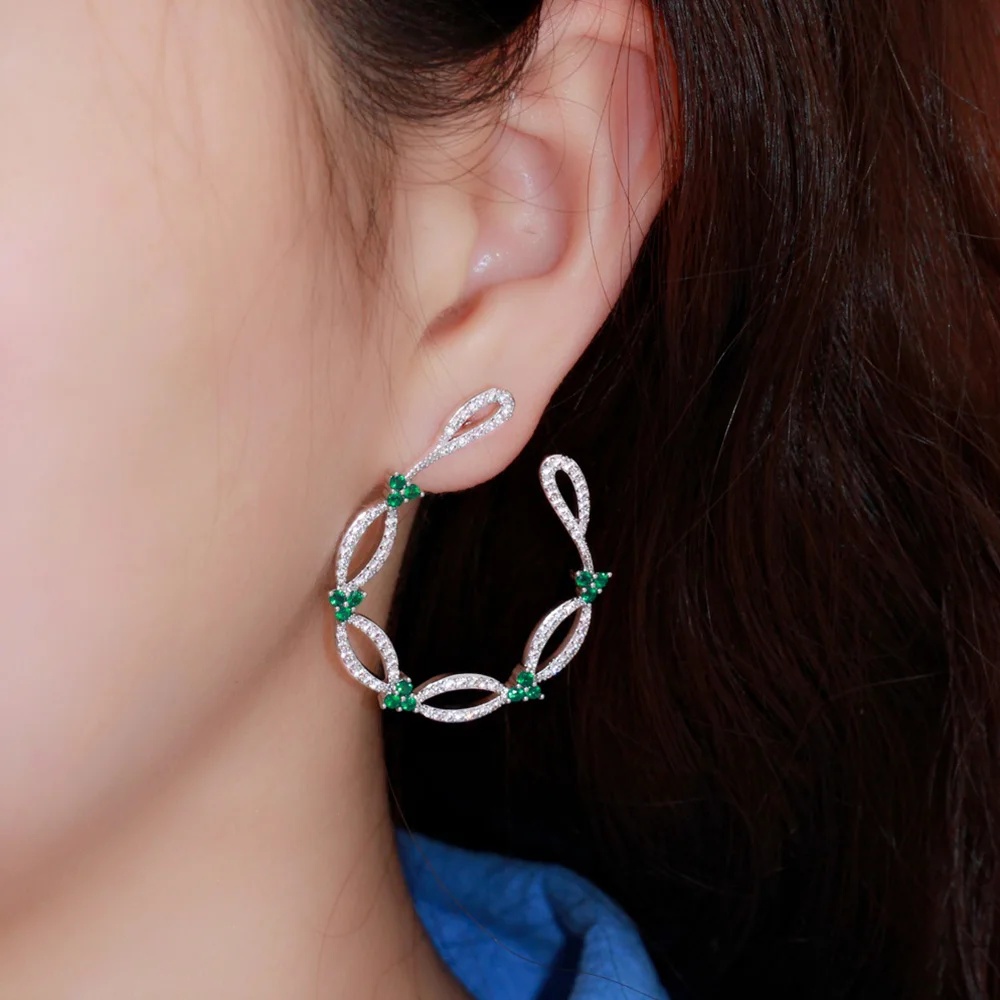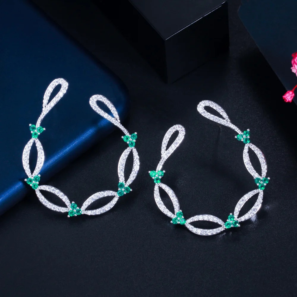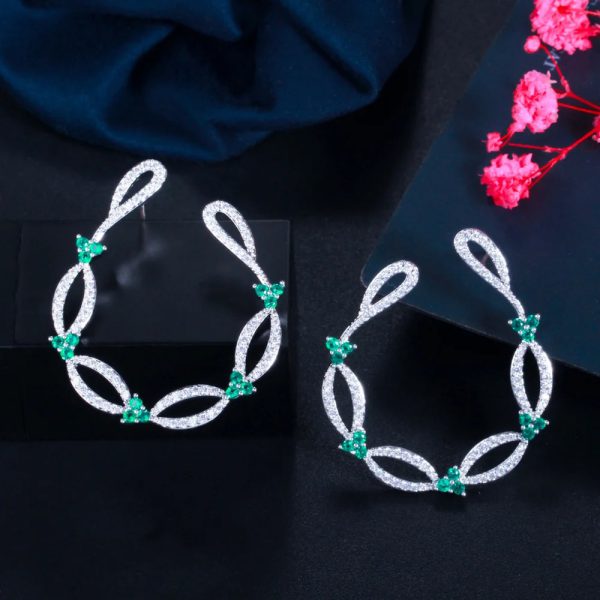 New Trendy Vines Shape Cubic Zirconia Big Symmetrical Stud Earrings