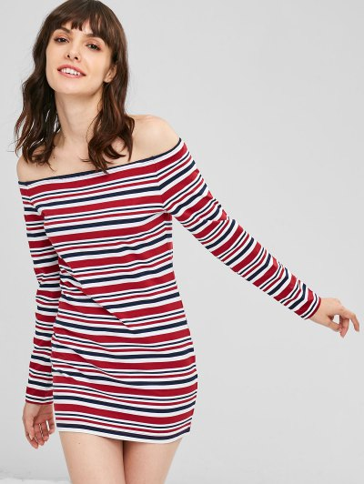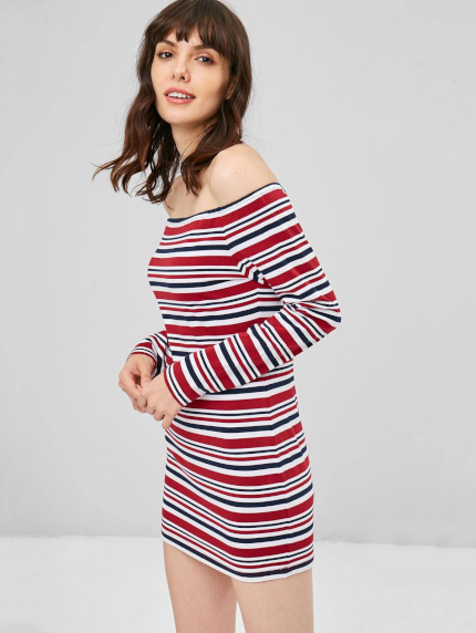 Crafted from the soft, stretchy fabric, this long-sleeved tee dress is given a flirty, casual finish with a flattering off-the-shoulder collarline and the mixed stripes pattern throughout. The eye-popping shade will make your summer-to-autumn closet sit up and take notice of this effortlessly casual style.