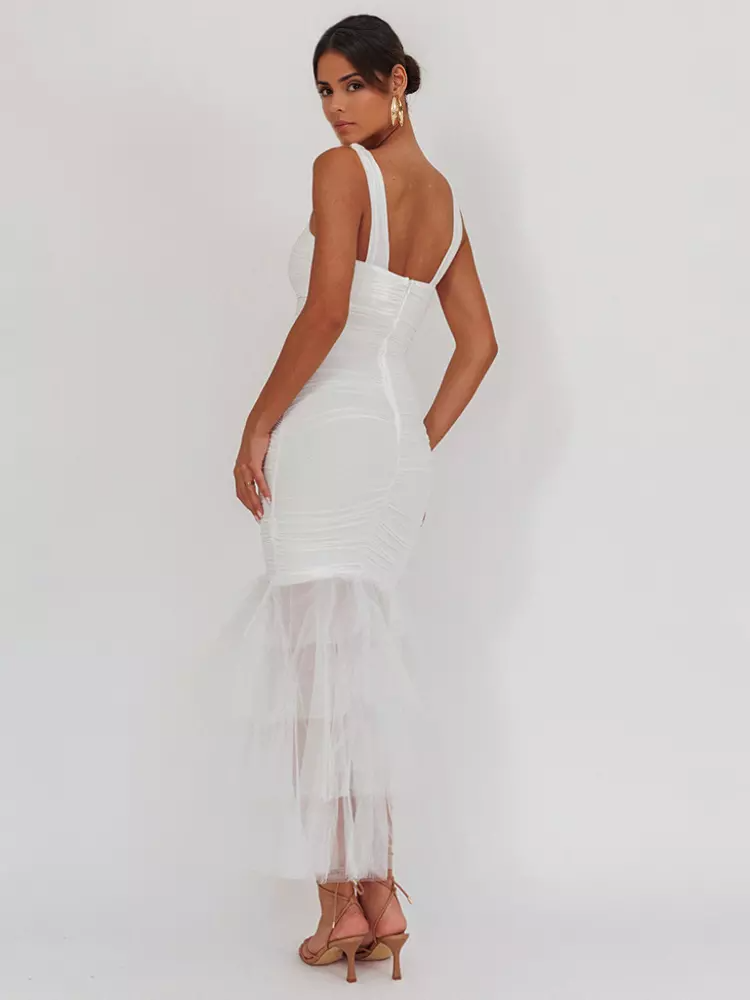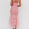 Ruffle Layered Hem Sleeveless Maxi Party Dress