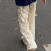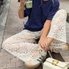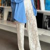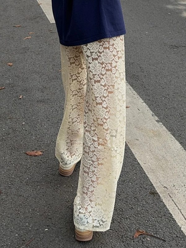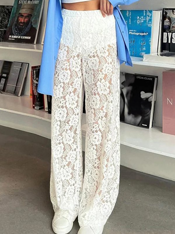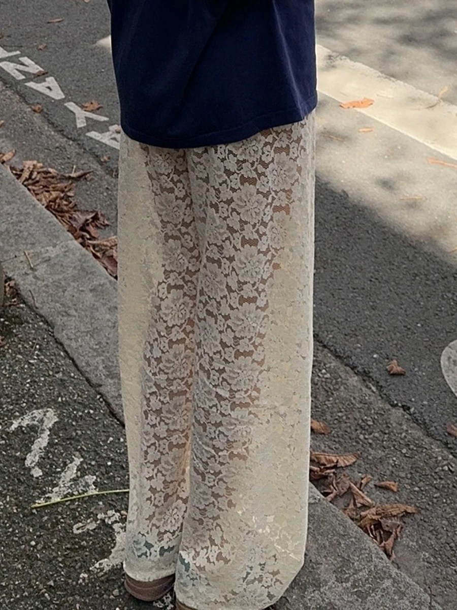 Vintage Loose Sheer Lace High Waist Wide Leg Pants Trousers